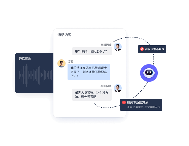 实时检测违规话术与异常行为,及时预警并干预,减少服务风险